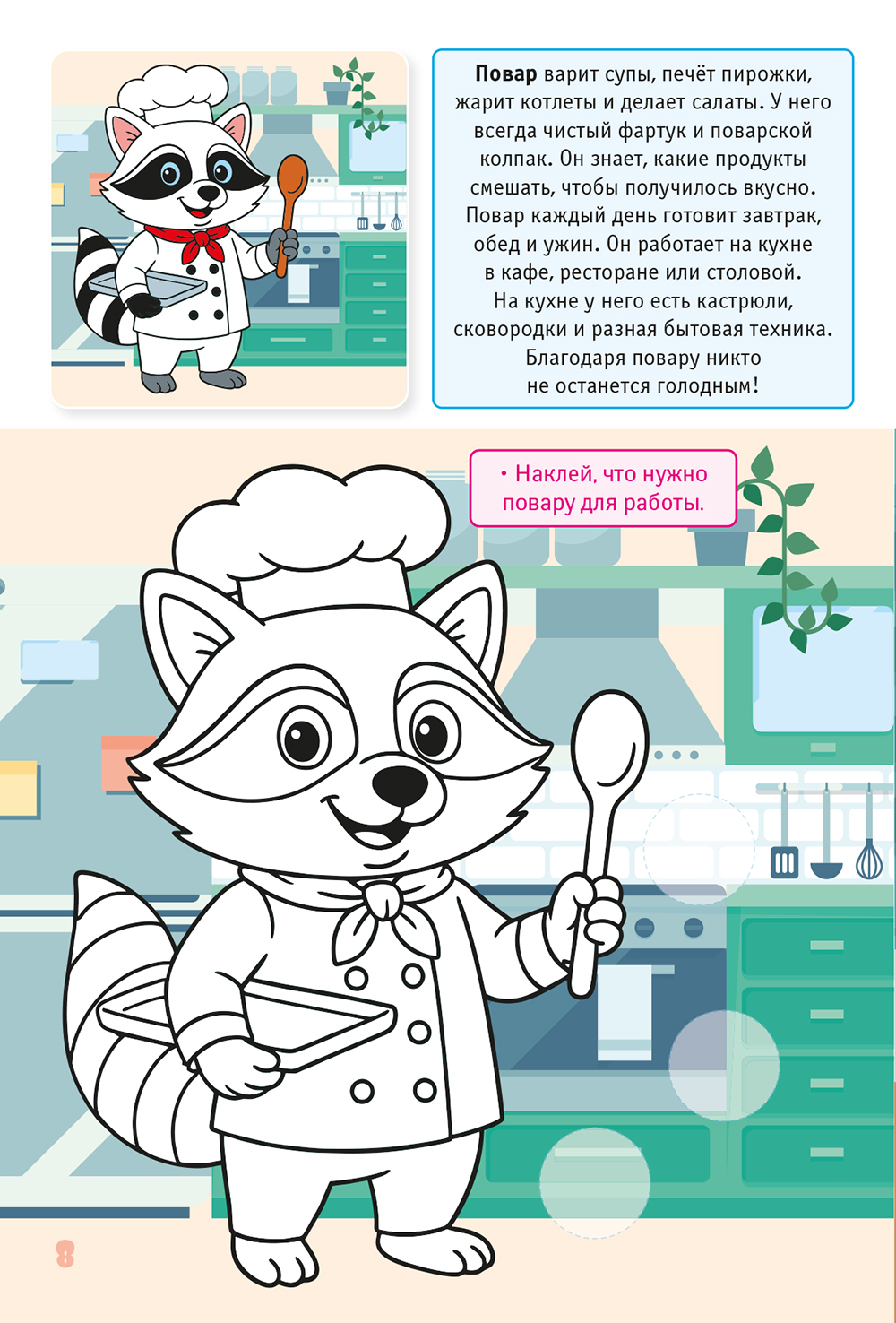 На каждой странице – картинка для раскрашивания по образцу, небольшой