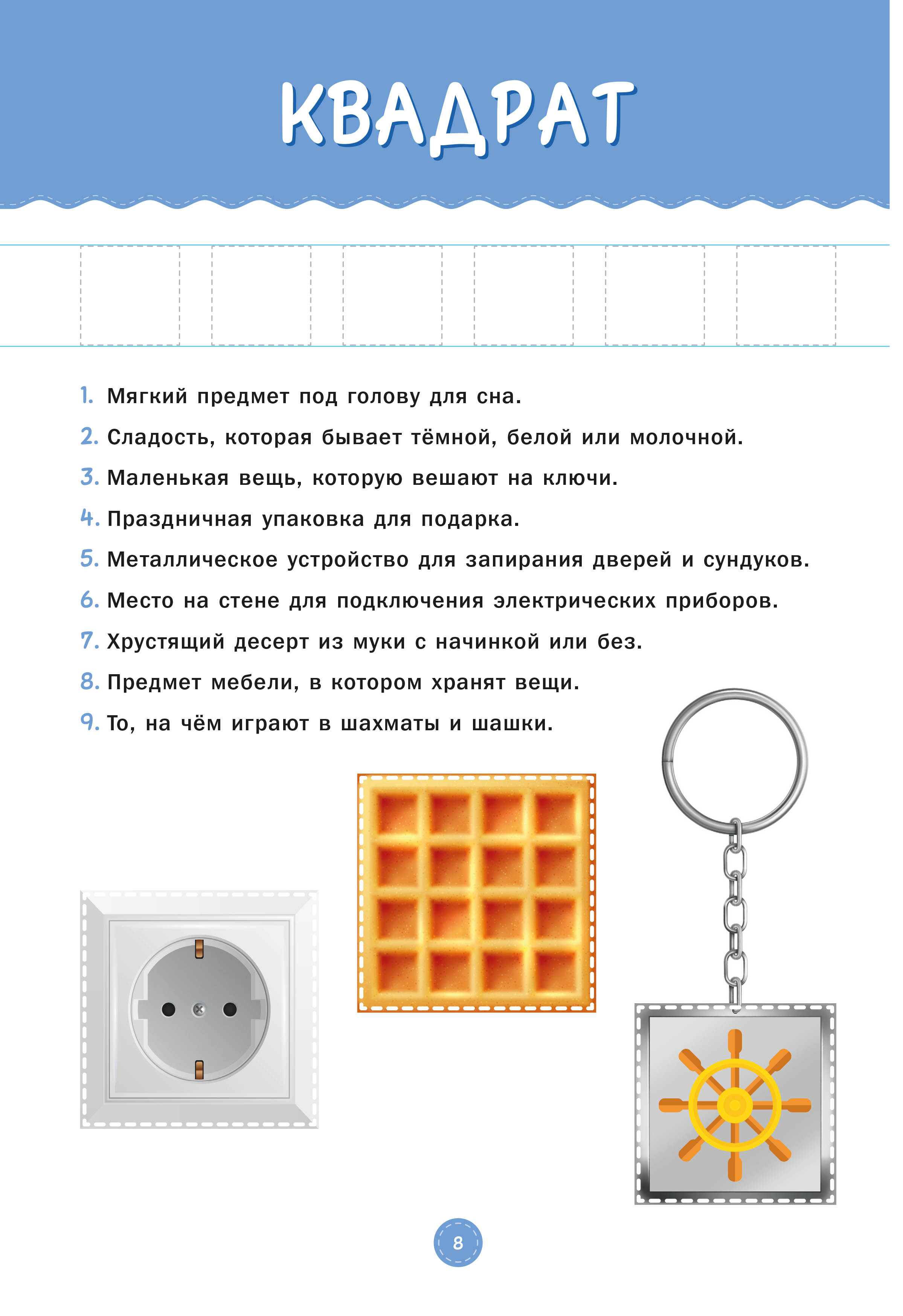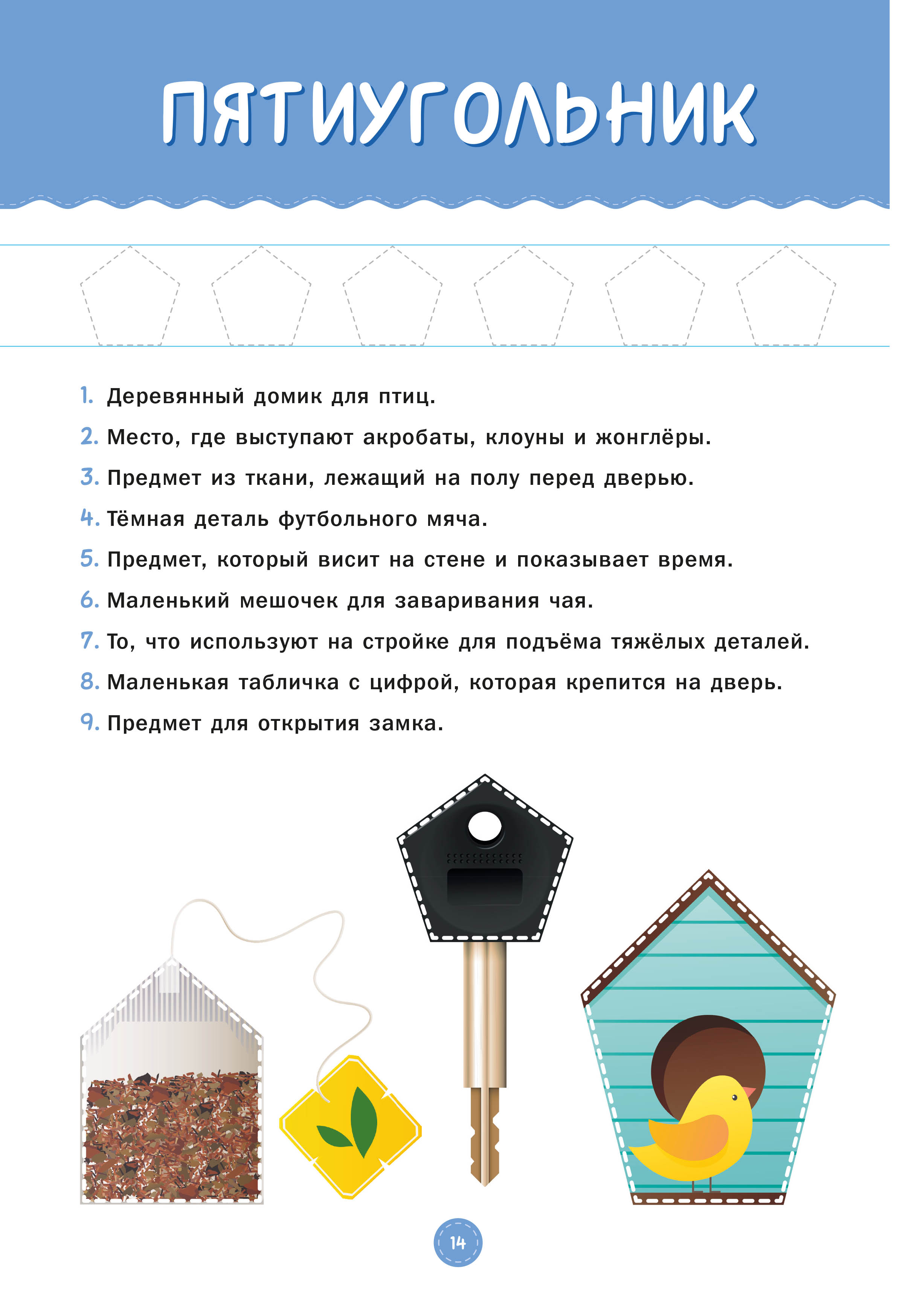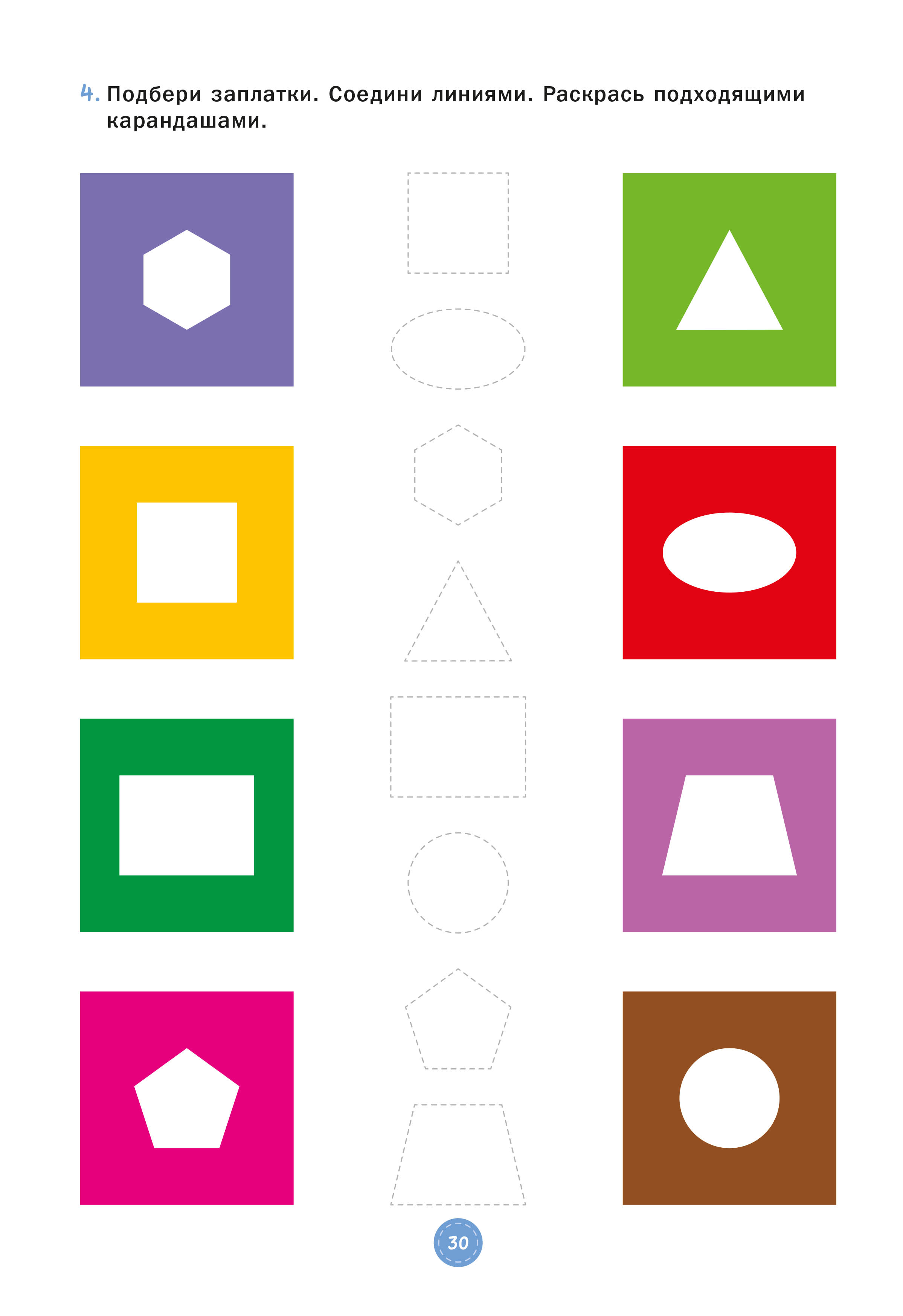 Это учебное пособие познакомит ребёнка с увлекательным миром фигур через яркие иллюстрации, игровые задания и популярную игру «Покажи и назови». Если малыш только начинает знакомство с фигурами, достаточно, чтобы он уверенно знал названия основных из них: круг, треугольник, квадрат, прямоугольник, овал. С остальными фигурами можно познакомить его без обязательного запоминания и отработки названий.