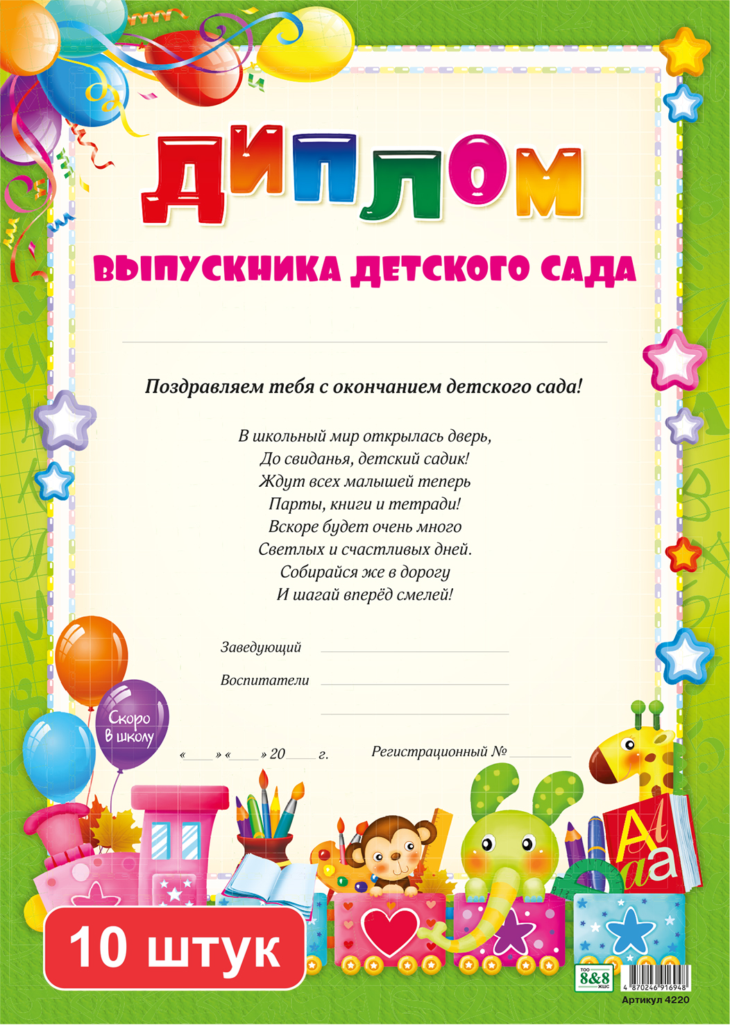 Набор. Диплом выпускника детского сада (4220). 10 шт.