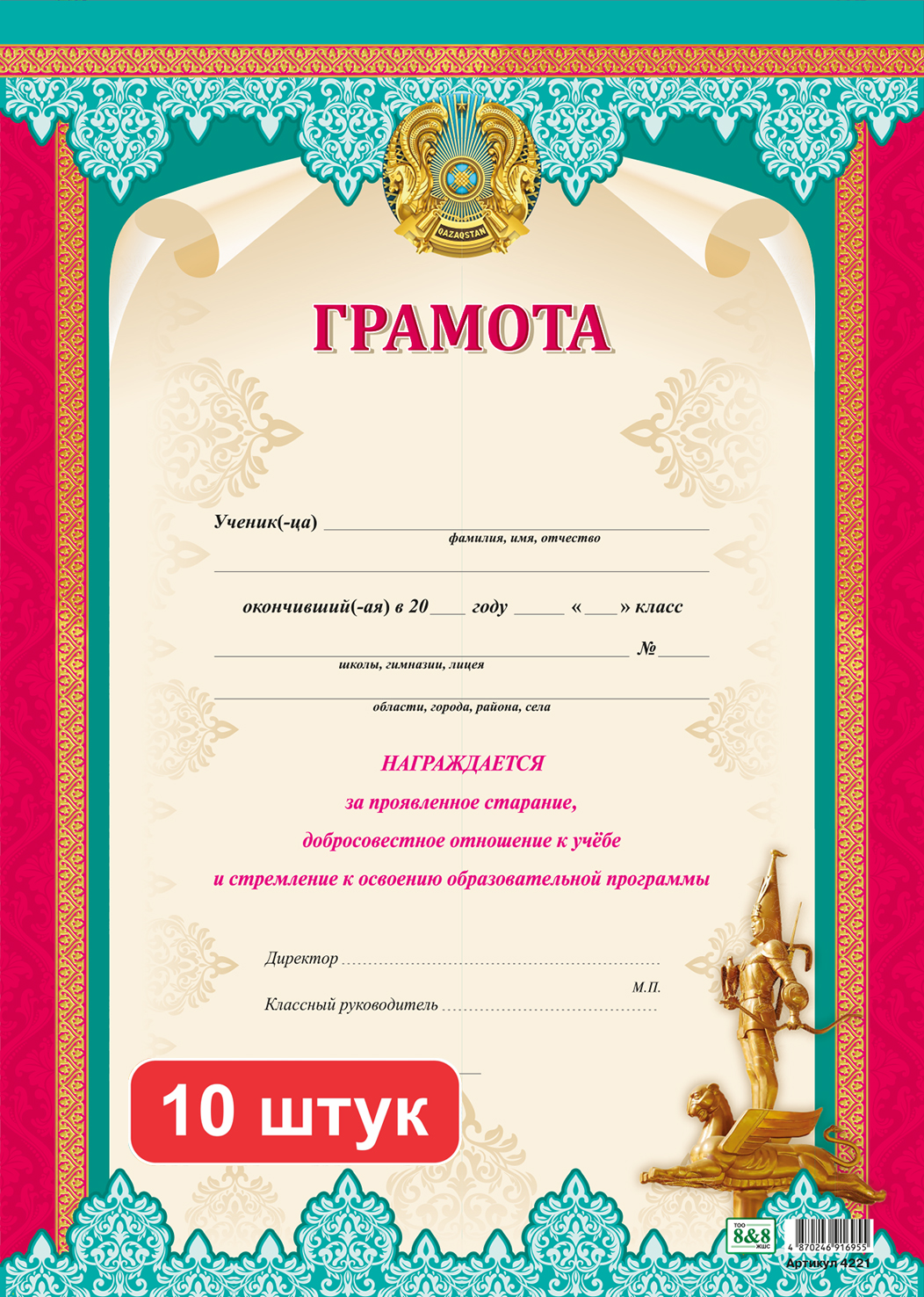 используется для выражения признательности учащимся. Бланк подходит для черно-белой и цветной печати.