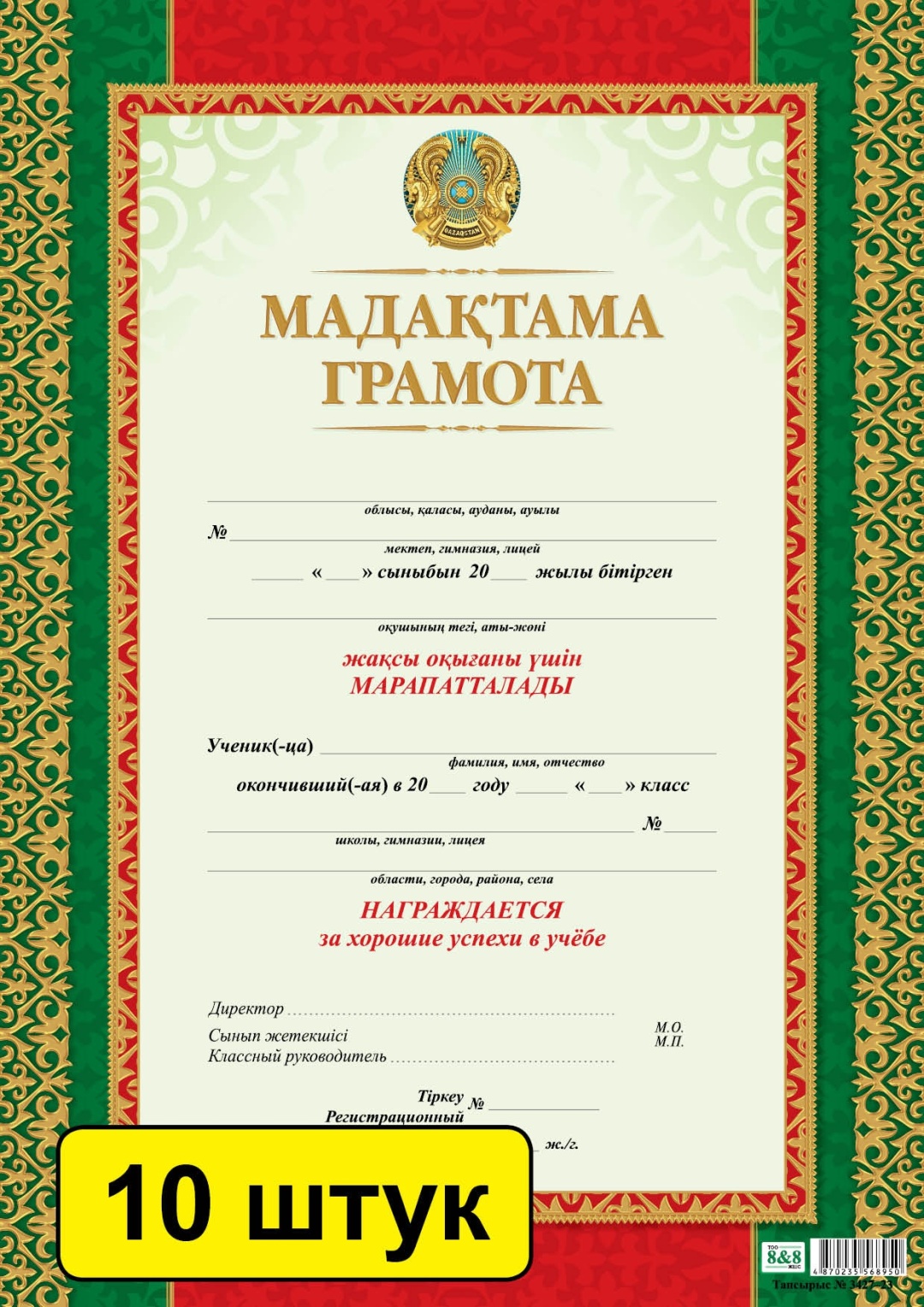 Мадақтама / Грамота (зак. 3427). Комплект из 10 шт
