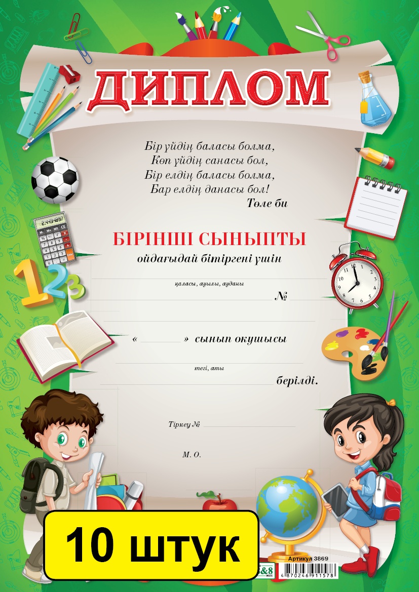 Диплом бірінші сыныпты ойдағыдай бітіргені үшін А-4 (меловка) (зак.3869). Комплект из 10 шт