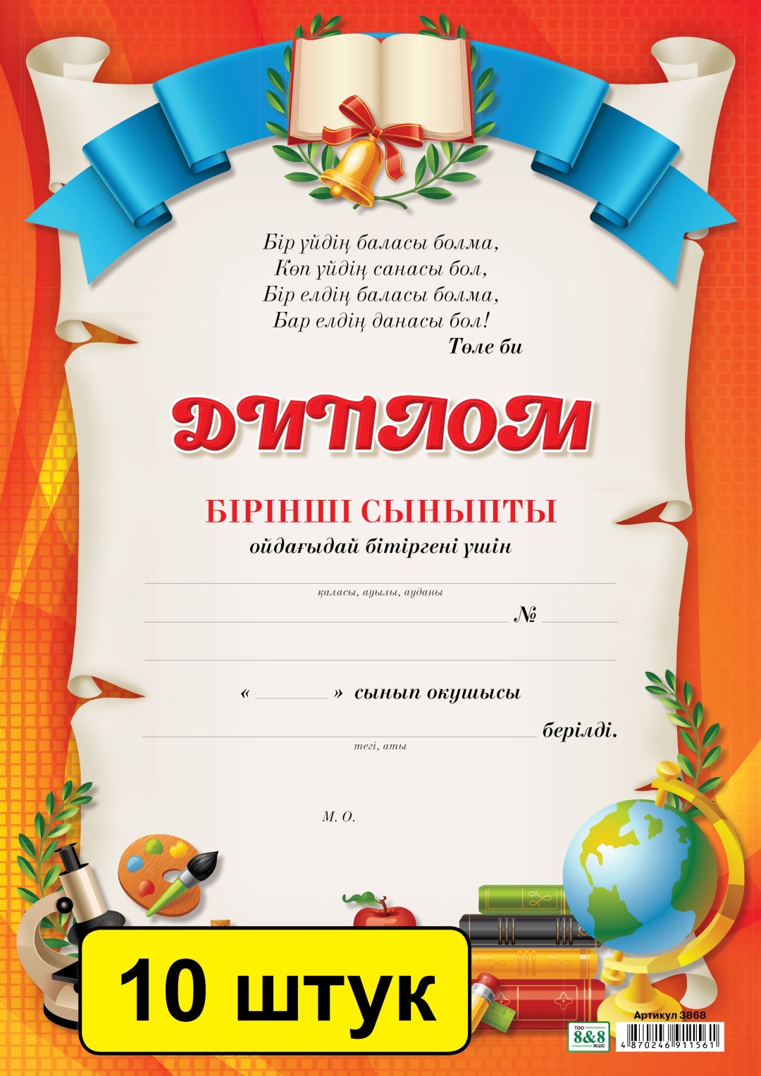 Диплом бірінші сыныпты ойдағыдай бітіргені үшін. (заказ 3868) Комплект из 10 шт