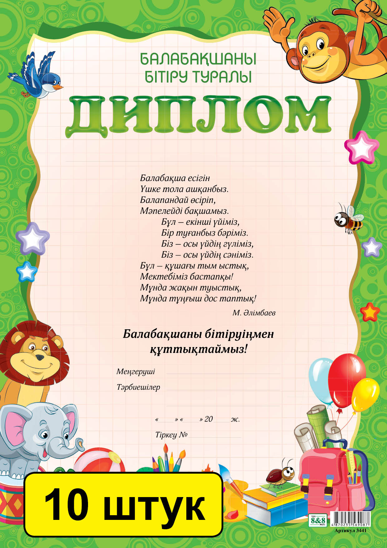 Балабақшаны бітіру туралы диплом (зак. 3441). Комплект из 10 шт 14003809