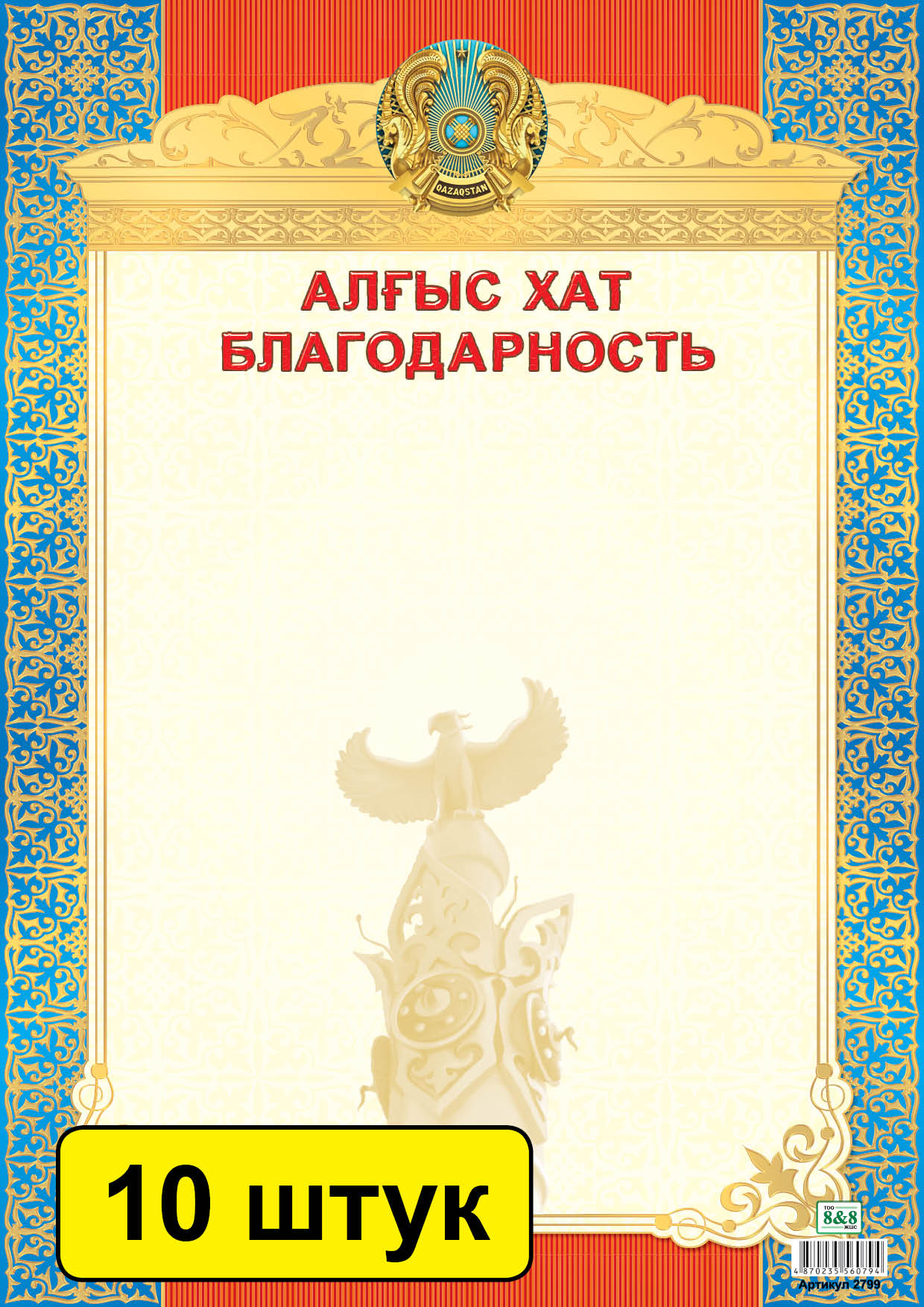 Бланк «Мадақтама / Грамота» используется для выражения признательности сотрудникам, коллегам, партнерам, учащимся. Бланк подходит для черно-белой и цветной печати.