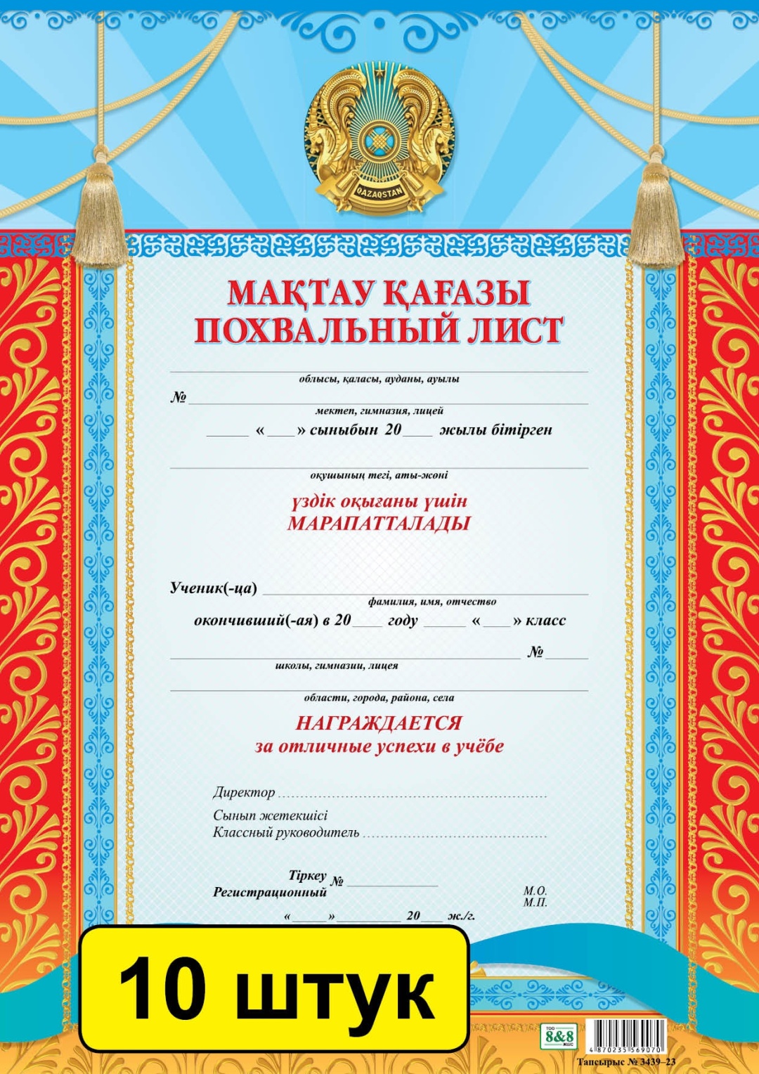 Мақтау қағазы / Похвальный лист (заказ 3439). Комплект из 10 шт