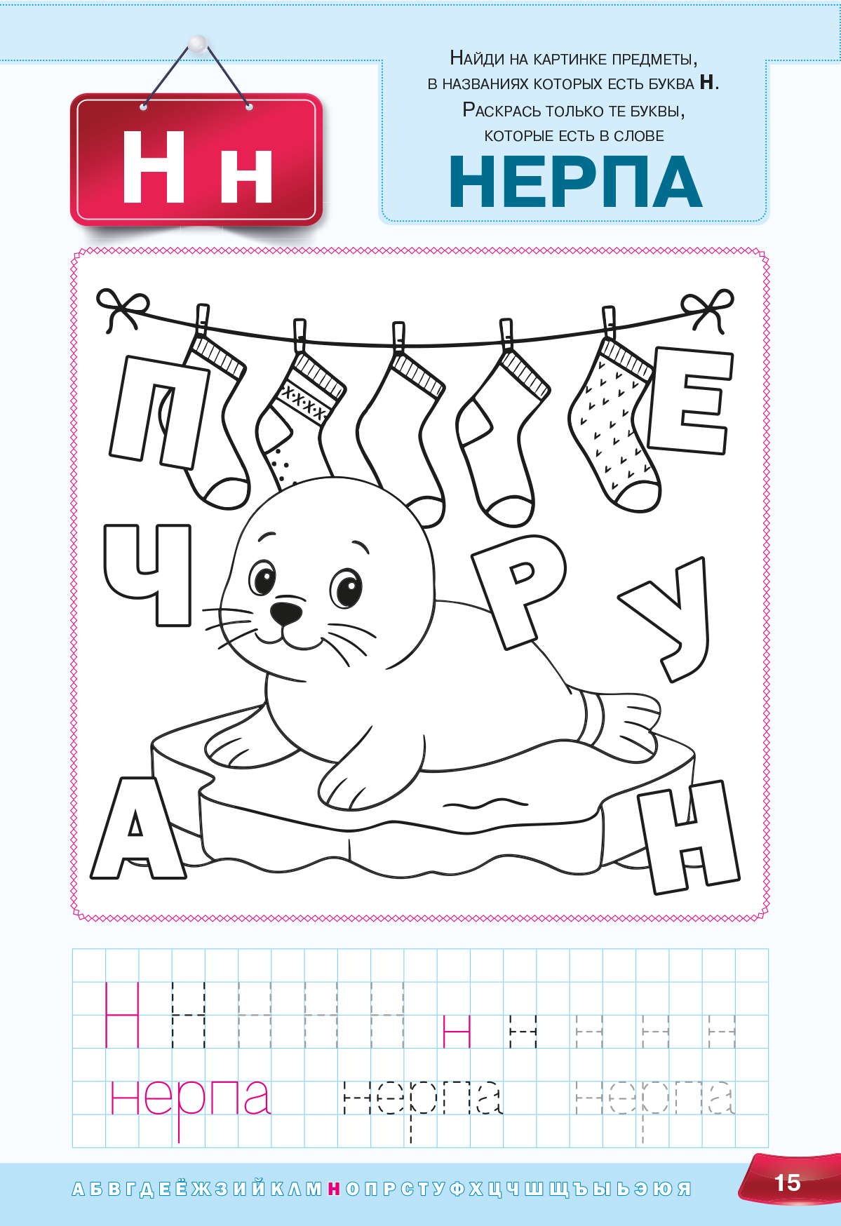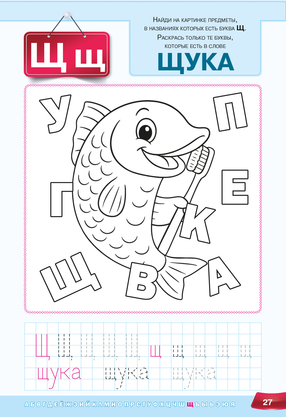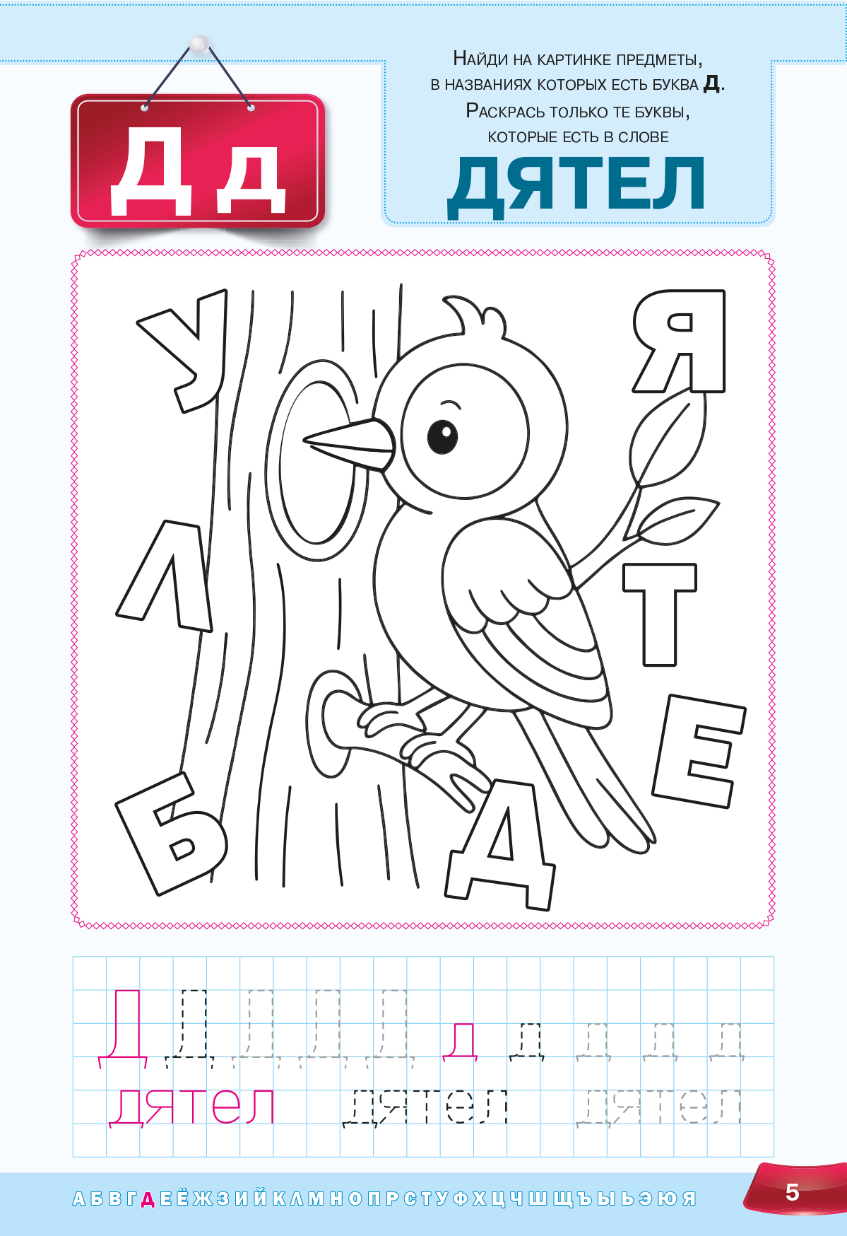 Пособие предлагает обучающий материал в игровой форме: крупный шрифт облегчает восприятие, а добрые иллюстрации для раскрашивания превращают обучение в увлекательное занятие. Небольшие задания способствуют развитию словарного запаса, внимания, интеллекта и воображения, а также формируют первичные графомоторные навыки и устойчивое представление о каждой букве.