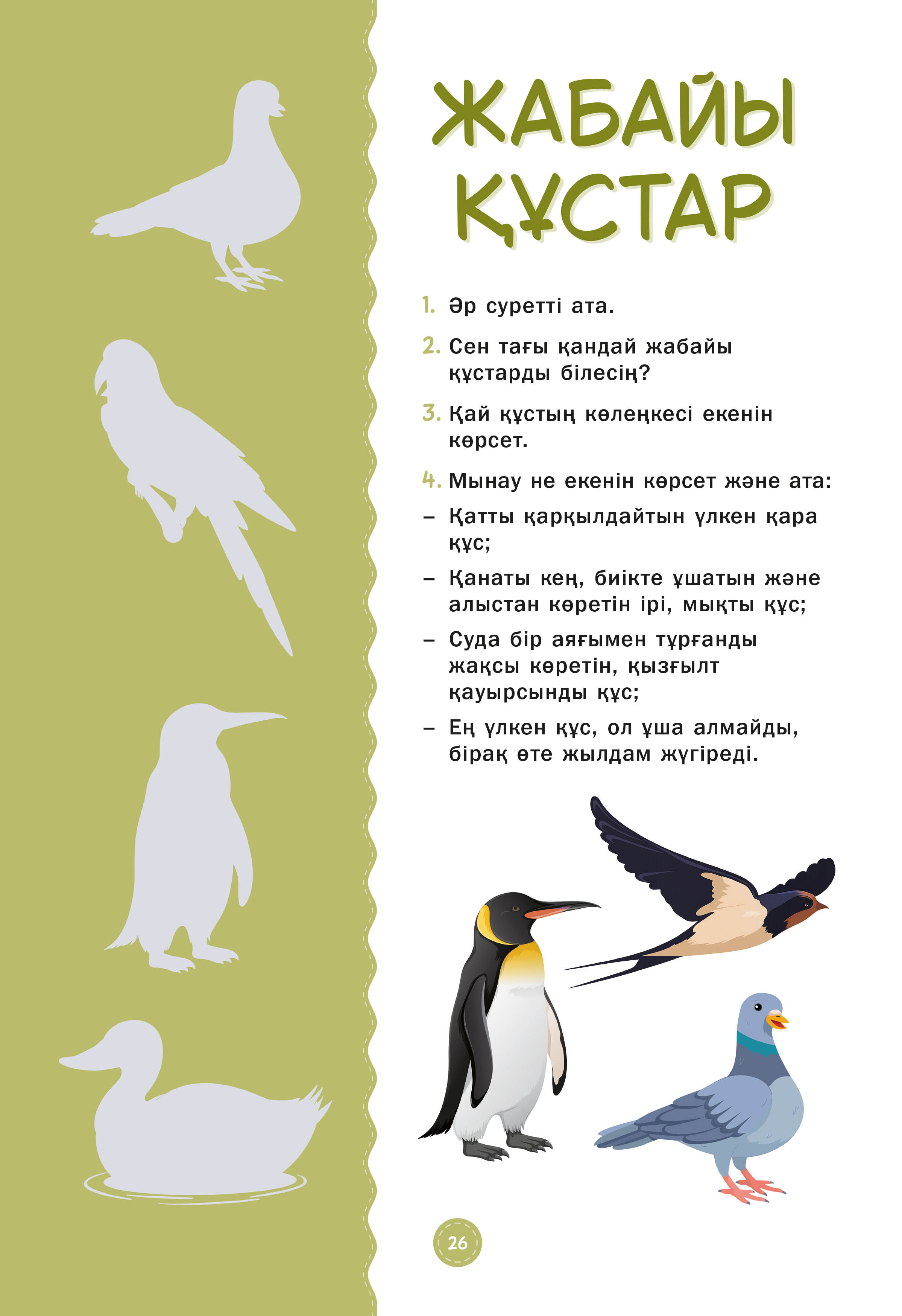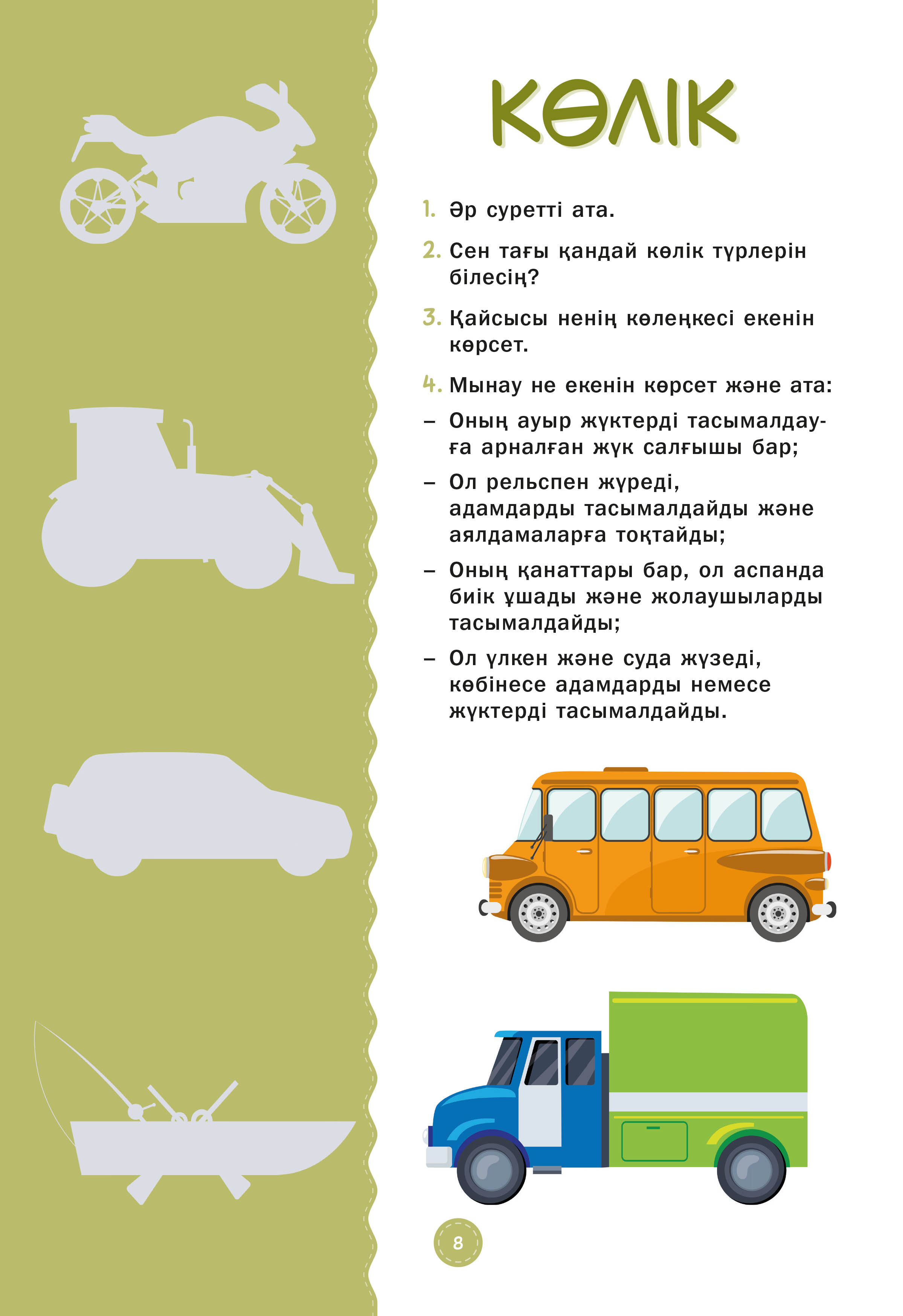 Бұл оқу құралы түрлі-түсті суреттер, ойын тапсырмалары және танымал «Көрсет те, ата» ойыны арқылы қоршаған орта туралы түсінік қалыптастыруға бағытталған. Материал тақырыптық қағида бойынша құрылған және баланың күнделікті өміріне ең жақын әрі түсінікті салаларды: ойыншықтарды, киім-кешекті, көлікті, тұрмыстық заттарды, тамақ өнімдерін, тірі табиғат өкілдерін және тағы басқаларды қамтиды.